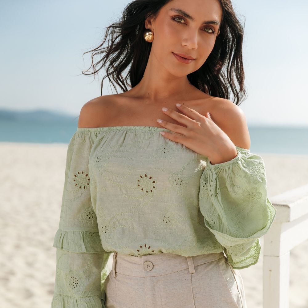 A Blusa Bata Bordada com Babados na Manga Feminina combina leveza e delicadeza em uma peça cheia de charme. O bordado traz um toque artesanal e sofisticado, enquanto os babados nas mangas adicionam movimento e feminilidade. Ideal para looks frescos e românticos, podendo ser usada tanto no dia a dia quanto em ocasiões especiais.