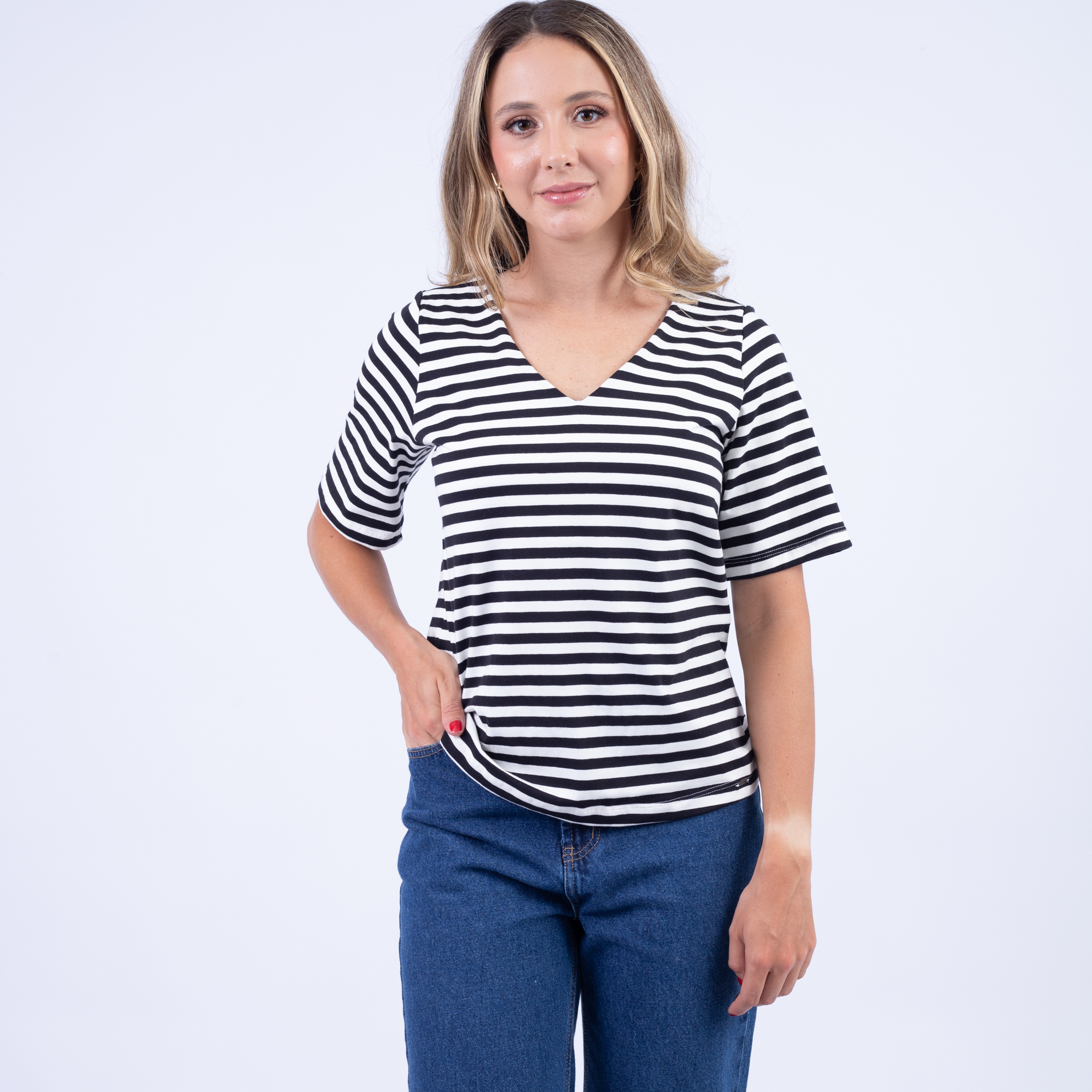 A Blusa Listrada com decote V e manga ampla combina estilo, conforto e leveza em uma peça moderna e versátil. Suas listras clássicas trazem um toque atemporal, enquanto a modelagem ampla oferece movimento e caimento elegante para compor looks casuais ou mais sofisticados.
