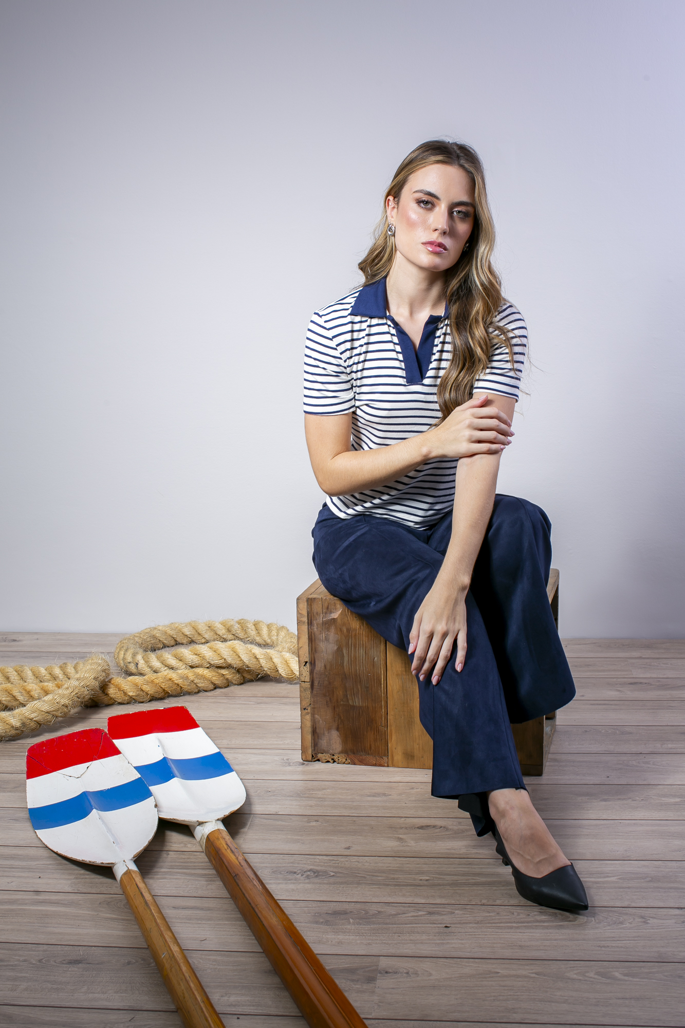 Blusa Polo Listrada Feminina Manga Curta clássica e atual, com proposta casual alinhada. As listras trazem um visual atemporal, enquanto a a gola polo adiciona um detalhe mais refinado à peça.