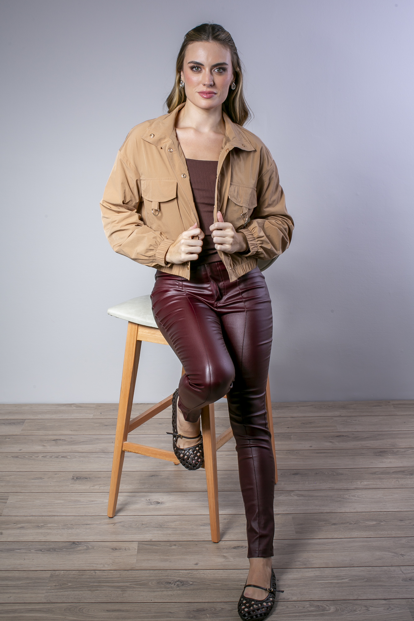 Jaqueta com comprimento curto. Possui bolsos funcionais e fechamento por botões, trazendo praticidade ao uso. A modelagem regular permite vestir com conforto e sobreposição.