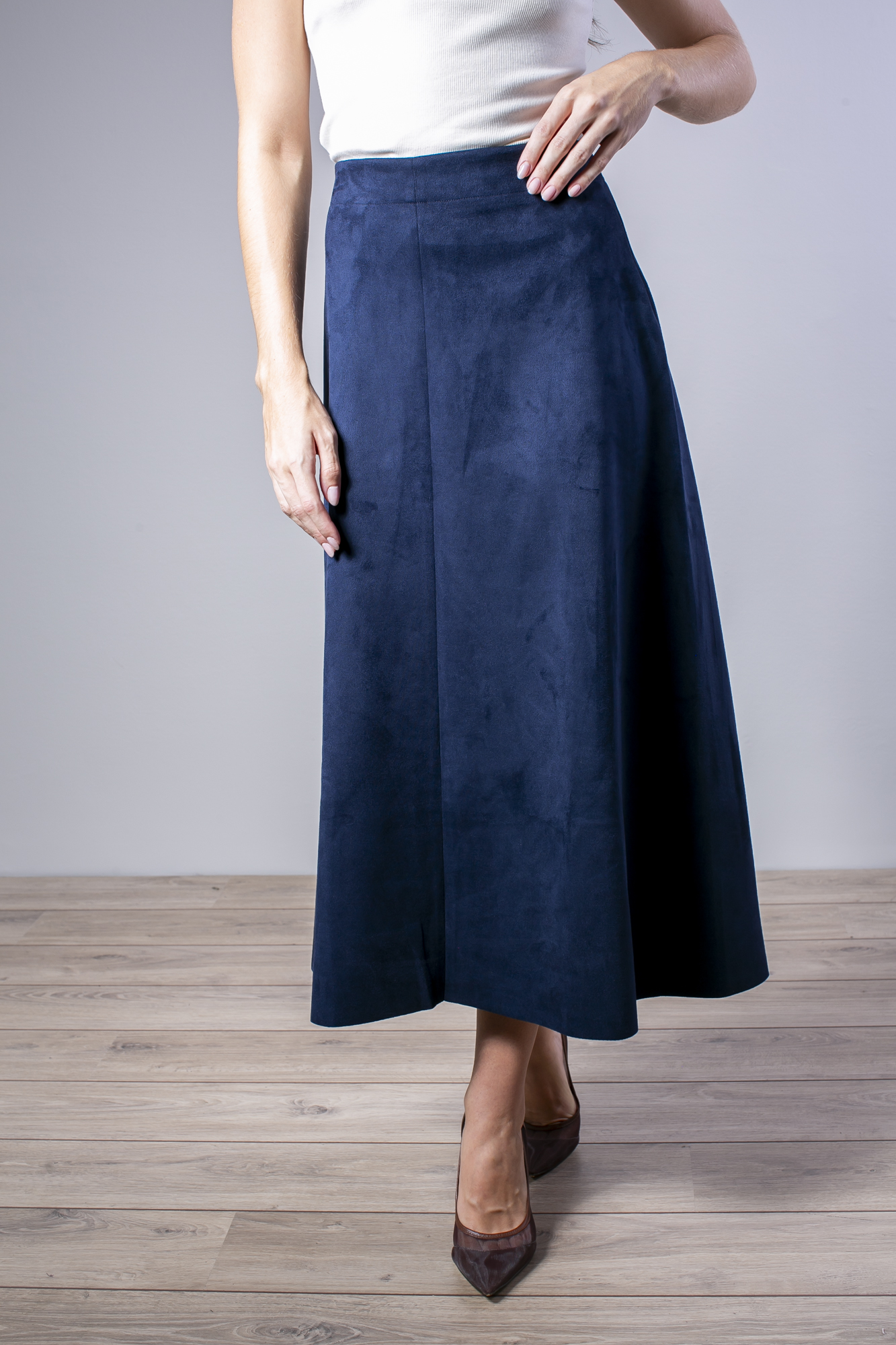 Saia em suede com toque macio e conforto para o dia e comprimento midi. A pence lateral contribui para melhor ajuste ao corpo, proporcionando um caimento mais definido.