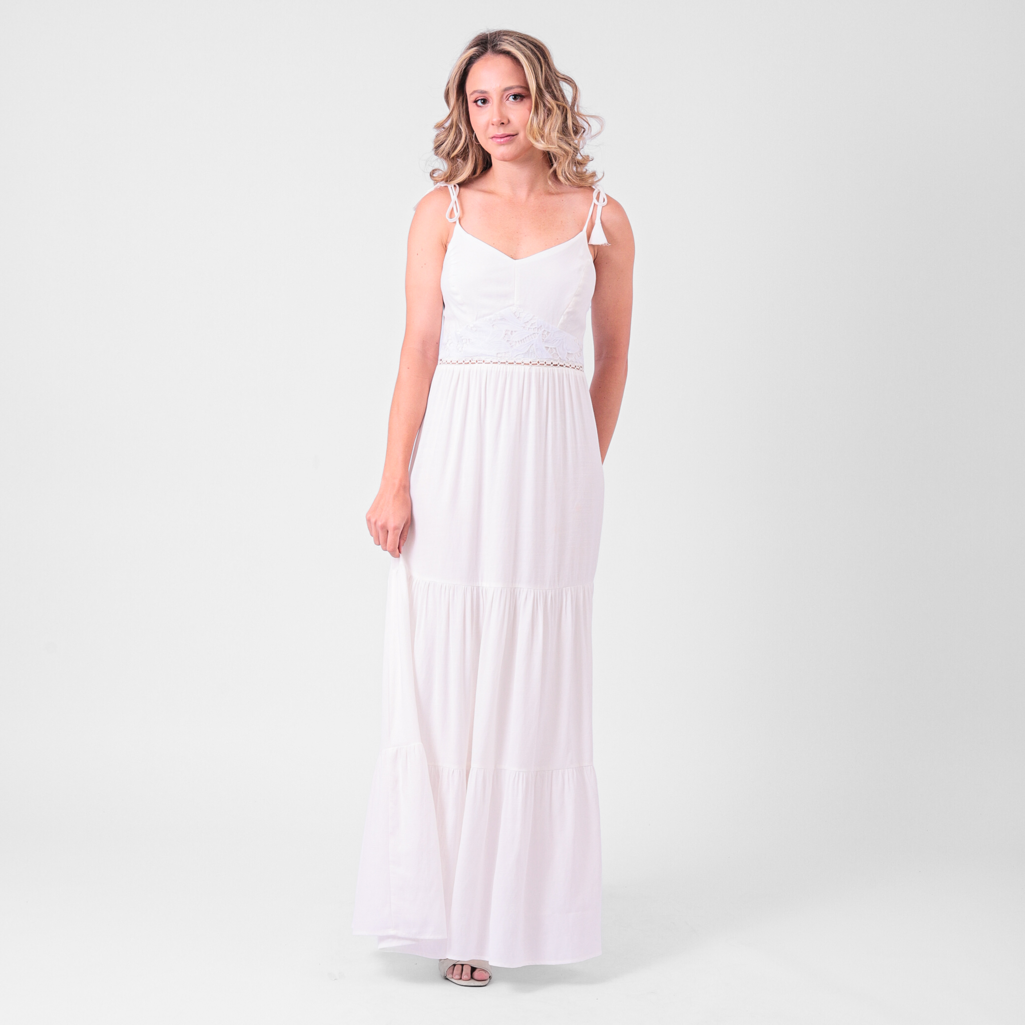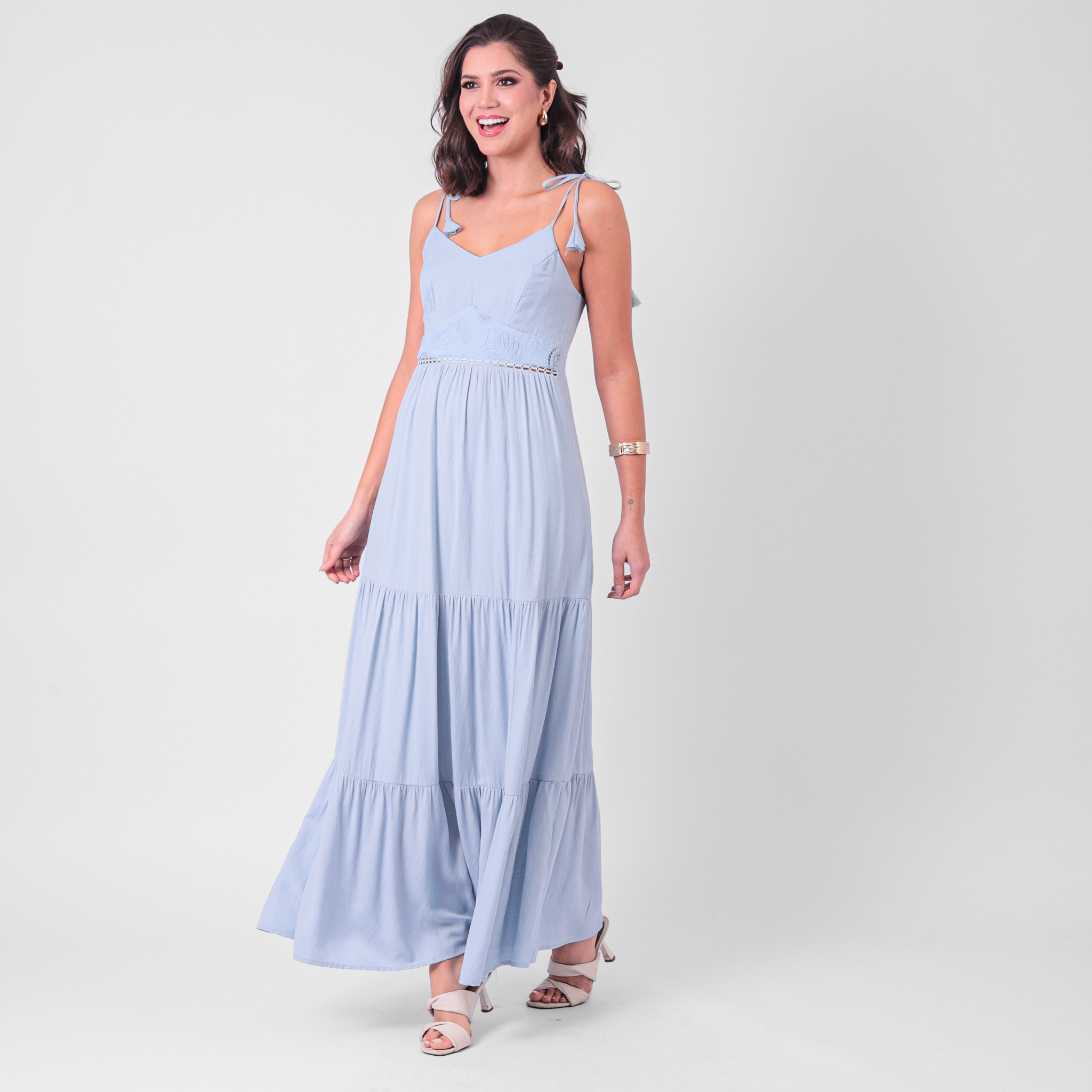 Elegante e delicado, o vestido longo com detalhe em renda é a escolha perfeita para ocasiões especiais. As alças com pingente trazem um charme diferenciado, enquanto o caimento fluido valoriza a silhueta com sofisticação. Uma peça que une feminilidade e estilo em cada detalhe.
