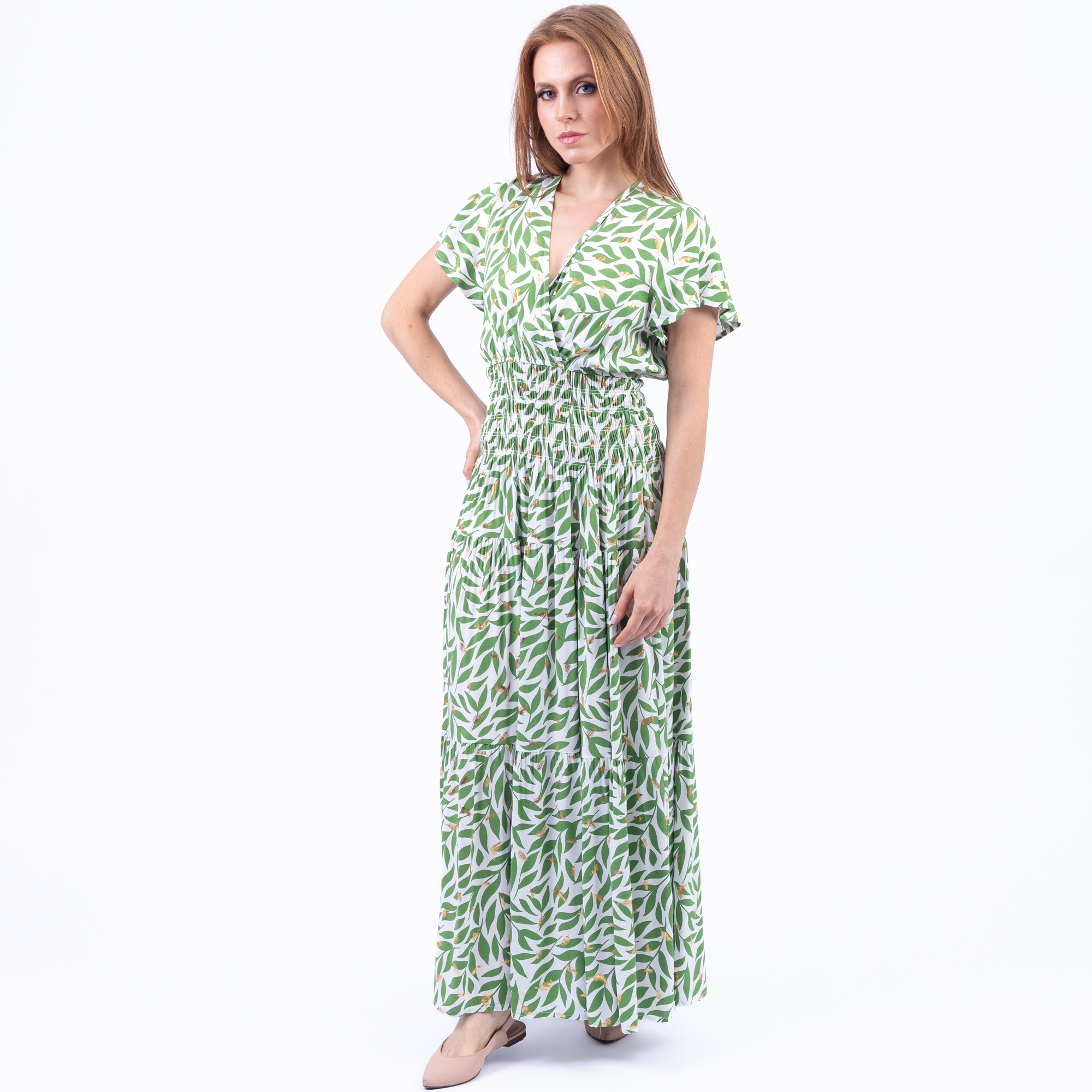 O Vestido Longo Manga Curta Com Lastex Estampa Folhas Feminino une leveza, conforto e um toque natural ao visual. Sua estampa de folhas traz frescor à produção, enquanto o lastex no busto valoriza a silhueta e garante um ajuste perfeito. Uma peça prática e charmosa para diversas ocasiões.